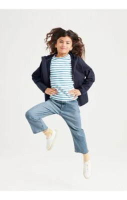 Komm heute nur wir zwei und unsere Lieblingsjeans: Moderne Passform mit höherem Bund und weiterem Bein. Bio-Denim in heller, nachhaltiger Waschung – perfekt für lässige Looks! Praktisch: Innen lässt sich per Gummiband die Weite regulieren. Auch bei der Kinder-Kollektion macht es einfach Sinn, hochwertige Bio-Baumwolle mit etwas Elasthan zu ergänzen – gerade damit sich die Kids frei bewegen können, hilft die Elastizität. Dabei bleibt die Jeans robust und formstabil. Neu ist die helle Farbnuance, die durch ein besonderes Waschverfahren entsteht, ohne erhöhten Wasserverbrauch. Gut zur Umwelt und ein klares Zeichen für nachhaltige Jeans.